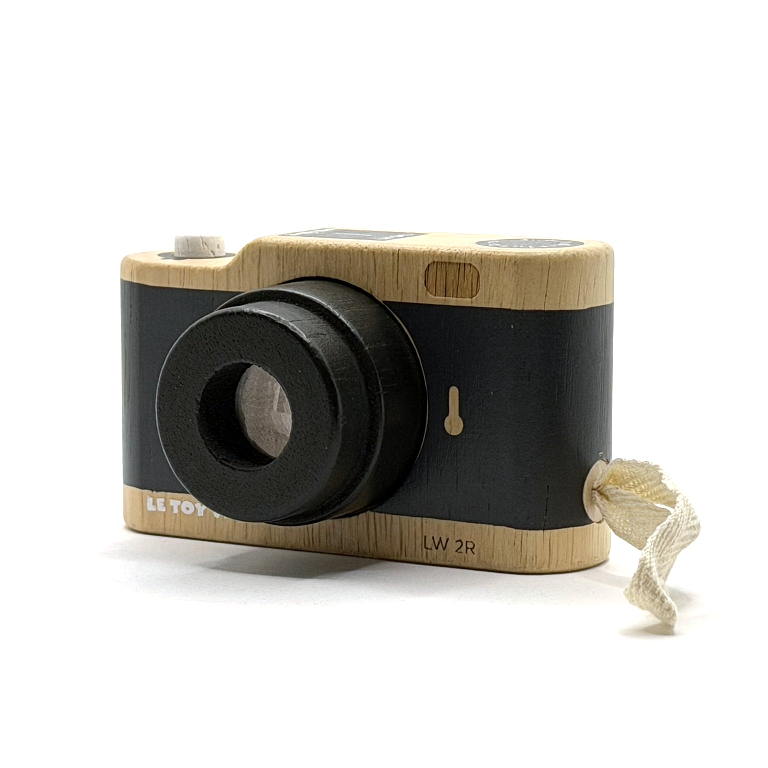 This charming wooden camera toy sparks imaginative play with a rotating kaleidoscope lens and working shutter button. Made from FSC®-certified wood with child-safe water-based paints, it's built to last and kind to the planet. The included cotton wrist strap makes it easy for little hands to carry on adventures. Perfect for children 3 and up who love exploring and creating.