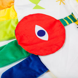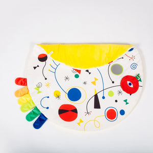 This double-sided 35-inch playmat features five carefully designed activities tailored to engage and support your child's growth from newborn to one year. It includes a mirror, grasping toy, sensory and squeeze toys, and soft plush petal flaps. The mat is machine washable and showcases unique artwork inspired by Joan Miró. Packaged beautifully, it also comes with free Montessori-inspired activities for parents to enjoy alongside their little ones.