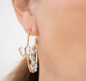 These charming porcelain earrings feature a playful tabby cat and butterfly design, crafted with care in a family workshop in Thailand and designed in Toulouse, France. Each pair is hand-painted on porcelain and paired with hypoallergenic, nickel-free gold-plated brass findings. The handmade nature of each piece means subtle variations that celebrate its artisanal quality. Measuring 4.5cm in length and weighing just 9.57g, they're comfortable for everyday wear. Your purchase includes a certificate of authenticity and arrives beautifully presented in a gift box or pouch.
