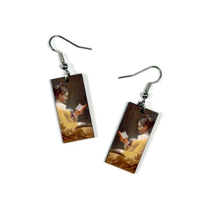 These earrings are made from recycled Eucalyptus wood board and feature laser-cut designs with a white polyurethane coating for a unique and eco-friendly touch.