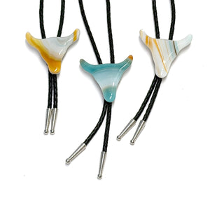 All handmade and kiln-fused in my Arizona studio, each bolo is a true original. Featuring a 40” braided leather cord finished with vintage tips and an adjustable back.