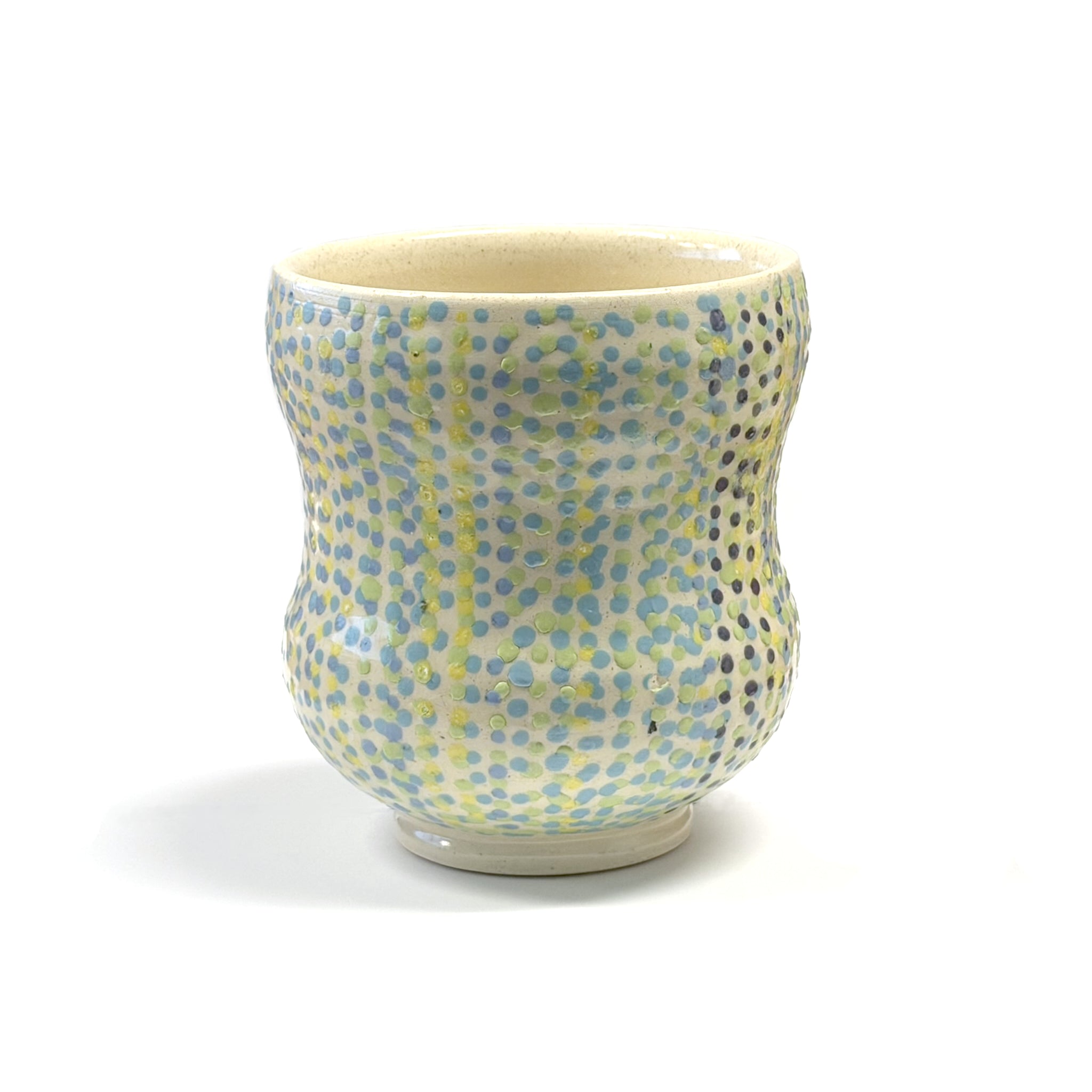 My clay work is strongly influenced by traditional ceramic objects. Because of my interests in these forms a main portion of my work relies on wheel thrown and hand-built objects with some utilization of slip casting. Using a variety of techniques allows me to play with the surface of my pieces in a much more freeing and organic way. I feel this allows me to experiment with object shape to create new and different takes on classic ideas. I find inspiration from traditional ceramic shapes, revising the forms I admire the most and make them my own. I use highly colorful underglazes and textural glazes to further push my work into a unique form. These techniques allow me to experiment with particular forms in a series, like the teapot form. I high-fire my pieces in a cone 10 reduction to achieve textured glazes and I often do multiple firings. I am also greatly influenced by contemporary ceramics and continue to expand my horizons as I continue to make new artwork.