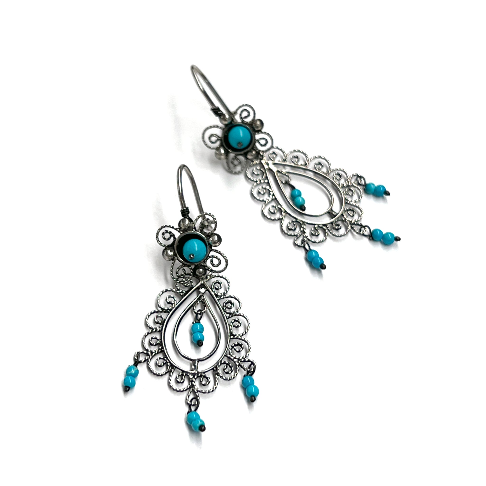Luce estos preciosos pendientes de plata de ley y turquesa con un toque fluido para darle a tu look un toque de dramatismo y brillo. Perfectos para el día a día o para ocasiones especiales, estos versátiles pendientes son perfectos tanto para el día como para la noche.
