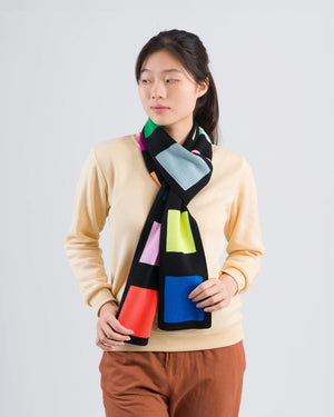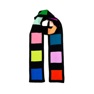 Una bufanda larga y fina de inspiración vintage, tejida con bloques de flores en contraste. Colorida, reversible y unisex. Ideal para usar en interiores y exteriores. Se puede atar y envolver de muchas maneras diferentes según el clima o el estado de ánimo. Tejida con hilo reutilizado.