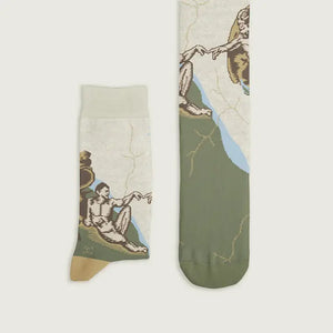 Inspired by Michelangelo's iconic fresco, these socks bring Renaissance art to your everyday style. Crafted from a premium blend of combed cotton, polyamide, and elastane, they feature seamless knitting for ultimate comfort. Made in Portugal with meticulous attention to detail, these socks offer a soft, durable wear experience. Perfect for art lovers and anyone who appreciates timeless masterpieces.