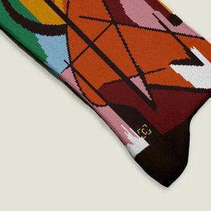 Inspired by Franz Marc's iconic 1913 painting, these socks bring artistic elegance to everyday wear. Crafted from a premium blend of combed cotton, polyamide, and elastane, they feature seamless knitting for ultimate comfort. Made in Portugal with meticulous attention to detail, these socks combine fine craftsmanship with wearable art.