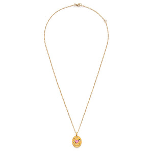Celebrate your affection with this thoughtfully crafted pendant necklace. The delicate .75" engraved charm suspends from your choice of a classic 20" figaro chain or a shorter 18" option, both treated to resist tarnish and maintain a hypoallergenic finish. Crafted from 14k gold-plated brass and designed in Sonoma, California, this piece combines elegant artistry with everyday wearability—ideal for expressing love on Valentine's Day or any occasion that calls for meaningful jewelry.