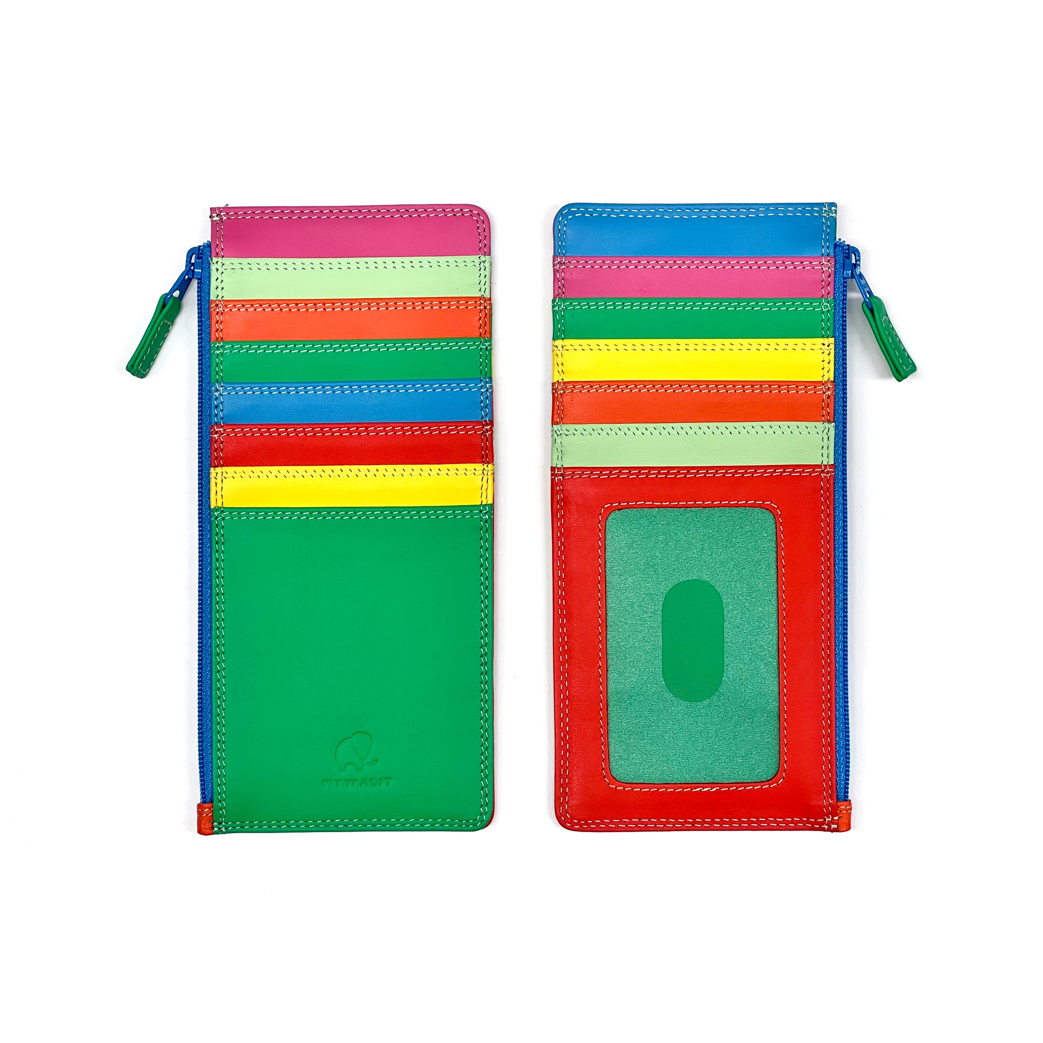 Our Credit Card Bill Holder not only holds multiple cards in a slim design, it also has a zip compartment for your pocket change and a transparent window for an ID or travel card! Ideal for everyday use. With RFID technology.
